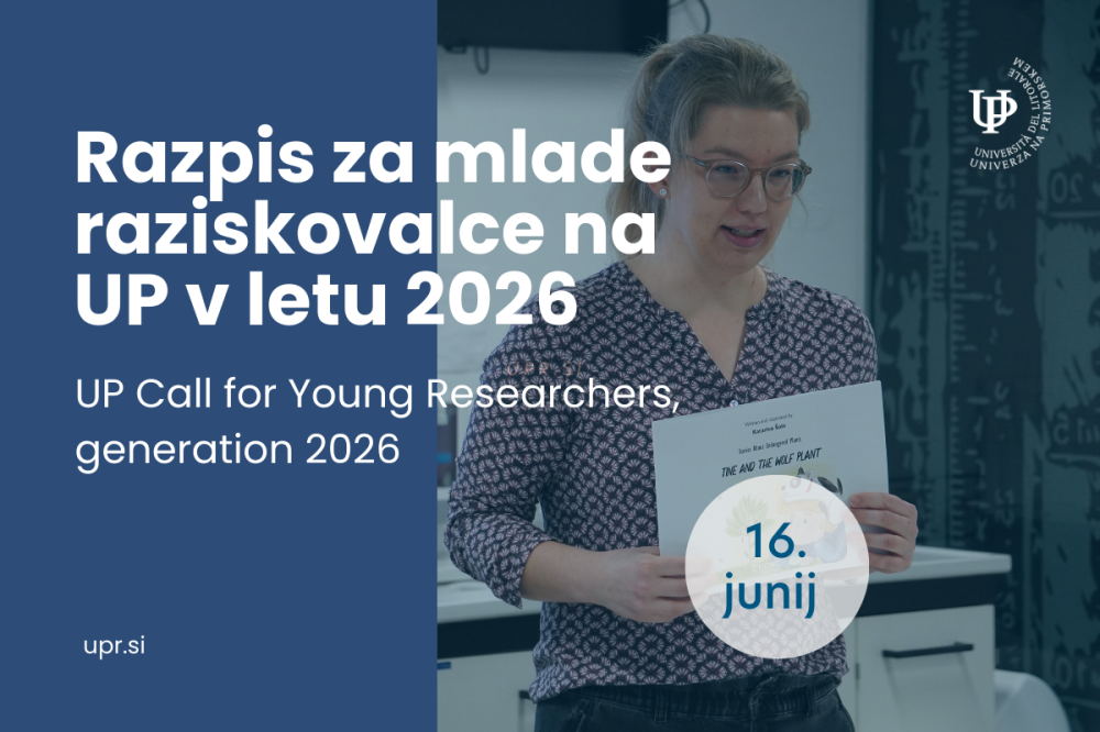Univerza na Primorskem je objavila razpis za mlade raziskovalce, ki se bodo v prihodnjih štirih letih usposabljali po programu, ki je sestavljen iz raziskovalnega in študijskega sklopa na podlagi pogodbe o zaposlitvi za polni delovni čas, za obdobje do 4 let. Posamezen mladi raziskovalec bo pod mentorstvom izvajal raziskovalno nalogo, ki bo ustrezno umeščena v raziskovalni program na članici UP. V letu 2026 so razpisana štiri prosta mesta za mlade raziskovalce, od teh sta na UP IAM in UP FAMNIT razpisana tri mesta.  več...